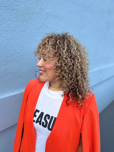 I want to see your hair in its natural form, as curly as possible. No hats, clips, headbands, ponytails, buns, twists, braids, or anything that changes your curl pattern. You can style your hair in a wash-and-go using water-based products.